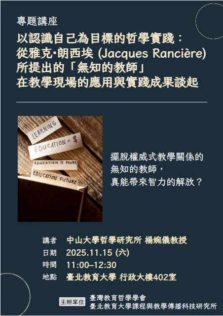 接續上個月的熱情討論!我們2025年11月的「教育哲學討論會」即將於11月15日(六)上午邀請到香港大學Liz Jackson教授以及中山大學哲研所的楊婉儀教授來擔任我們當天的演講者。演講內容精彩可期,不容錯過!